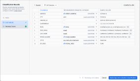Each column can be checked to see whether and how Snowflake has classified each column.